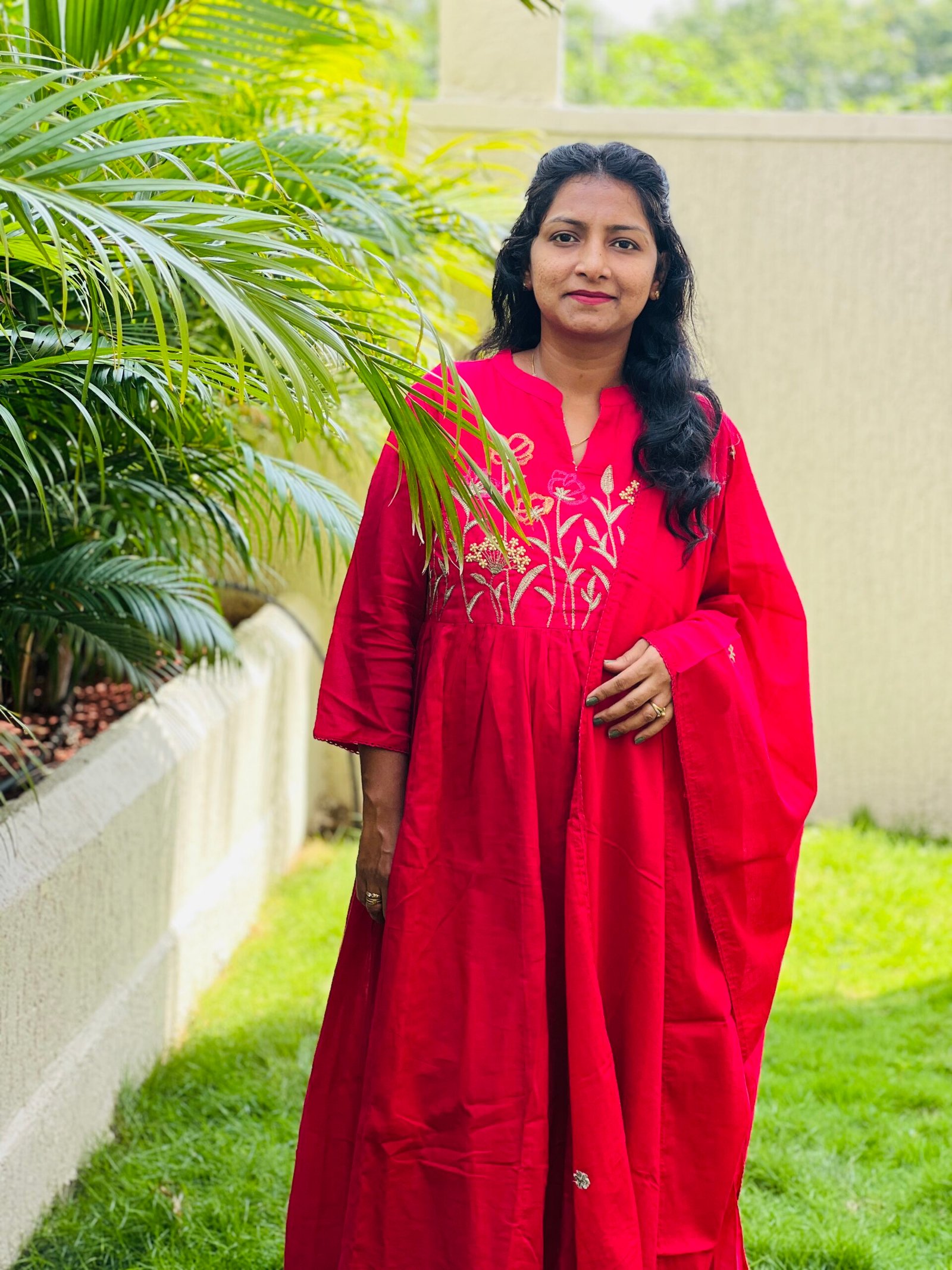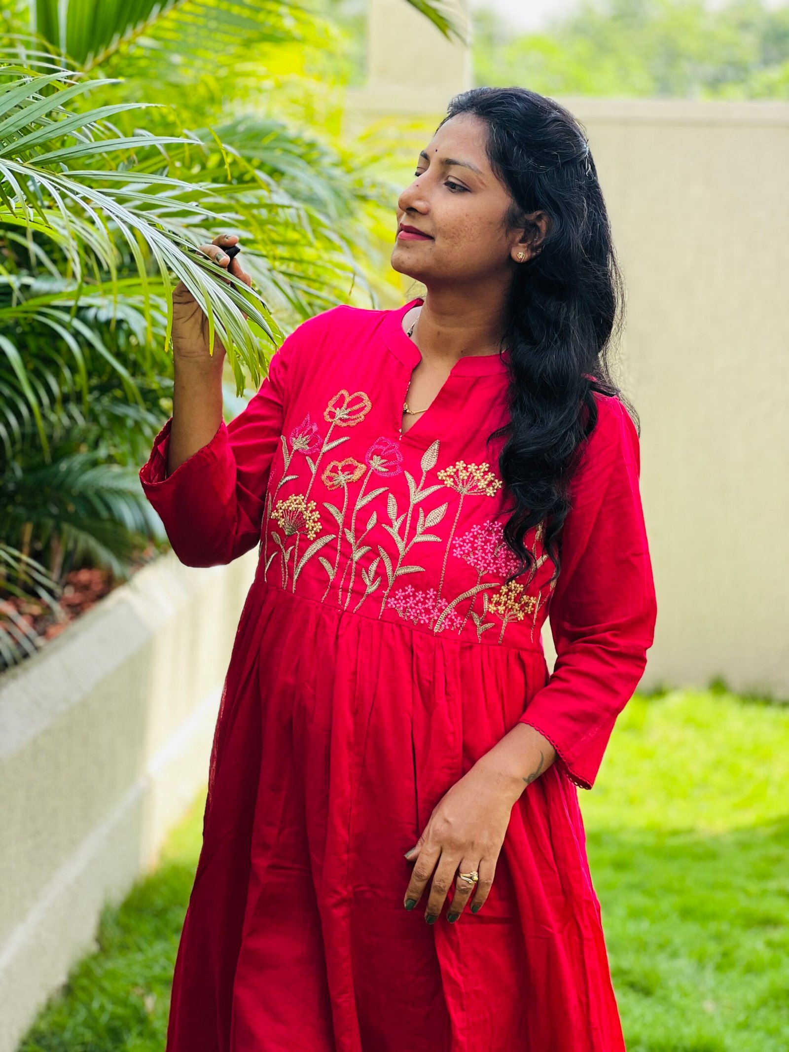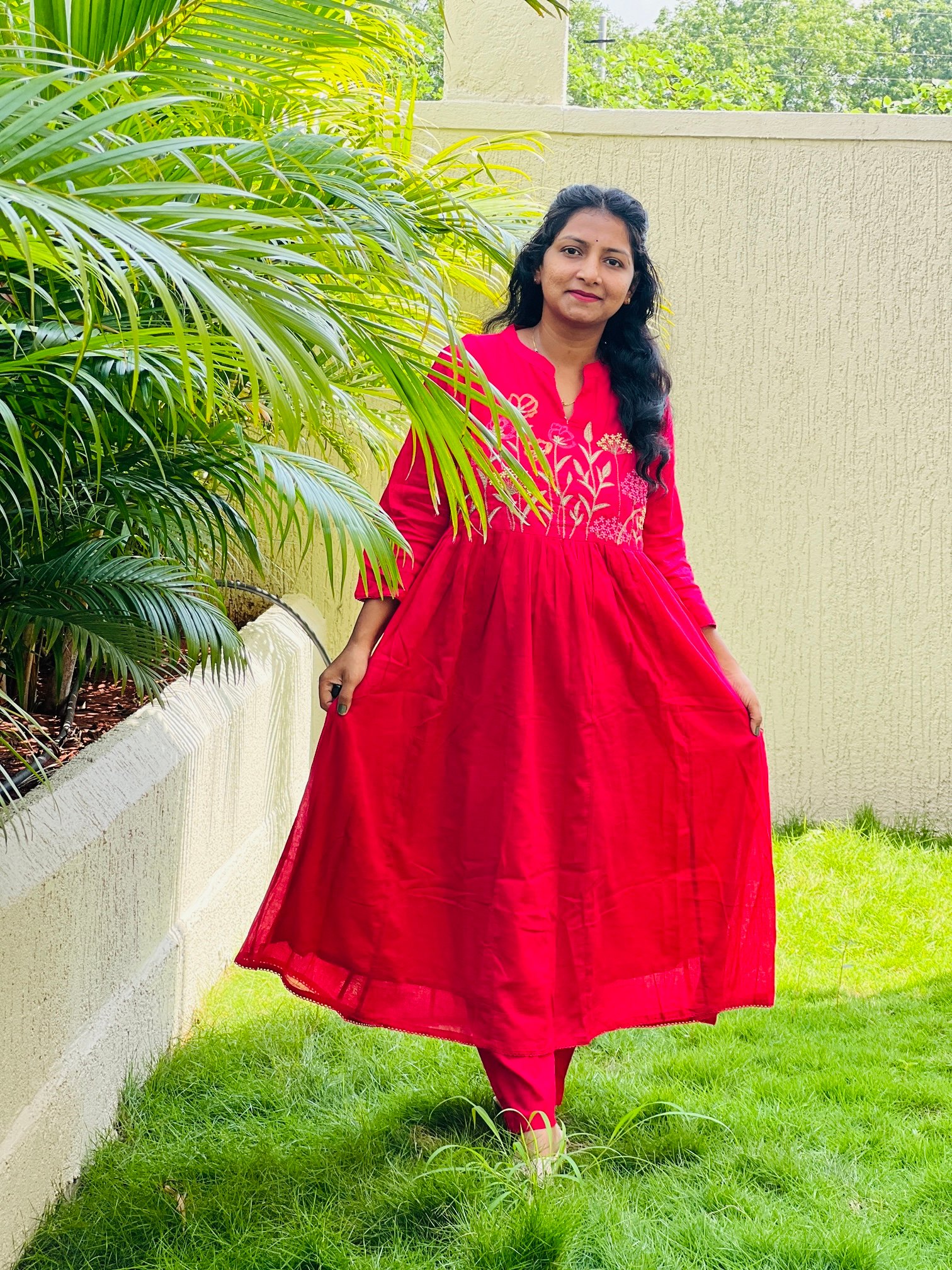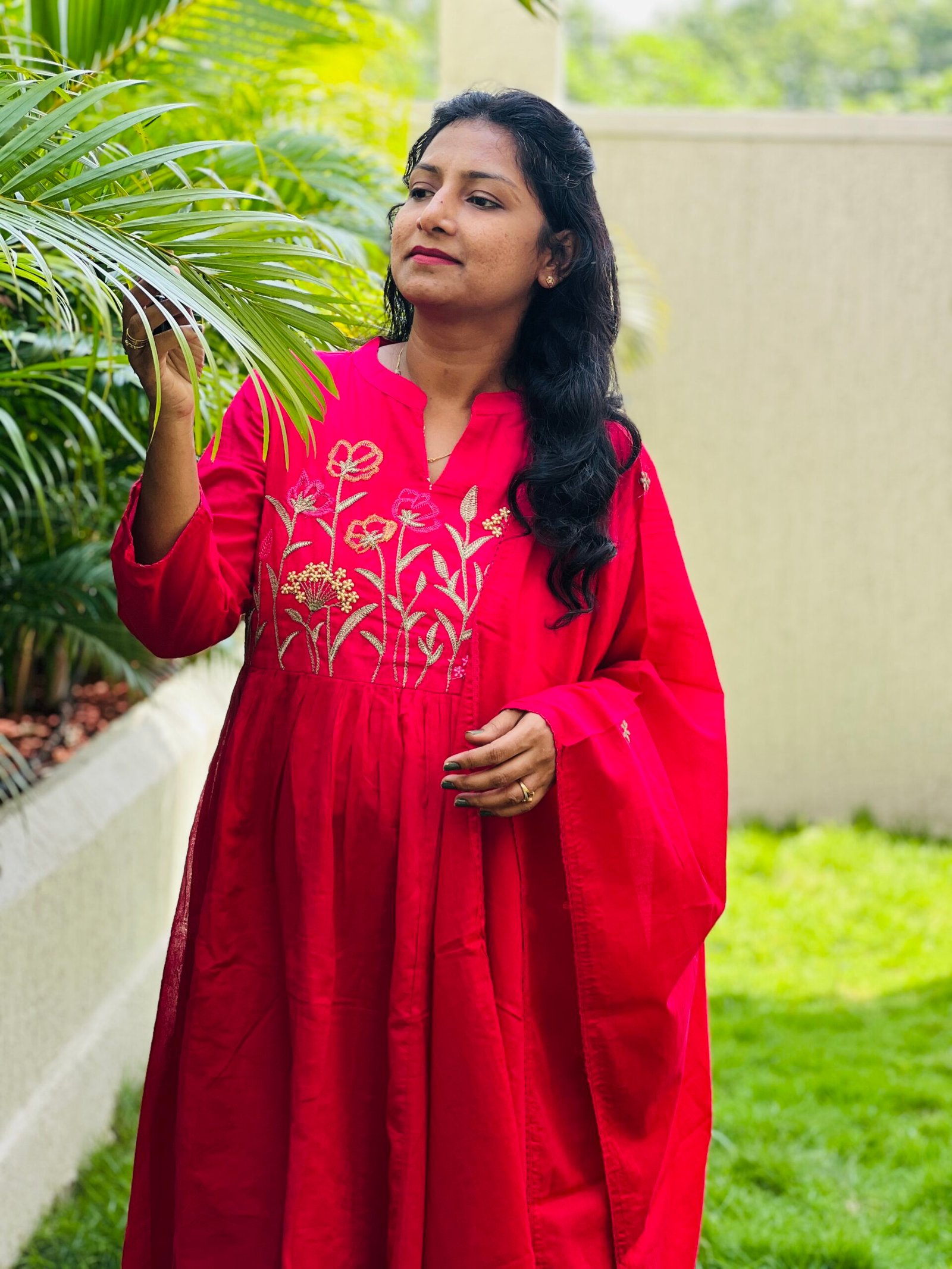 This Floral Embroidered Umbrella Kurti set gives you a rich Aesthetic look followed by embroidered Dupatta with Mul cotton Lining for top Comfortable and Classy for any Occasions.