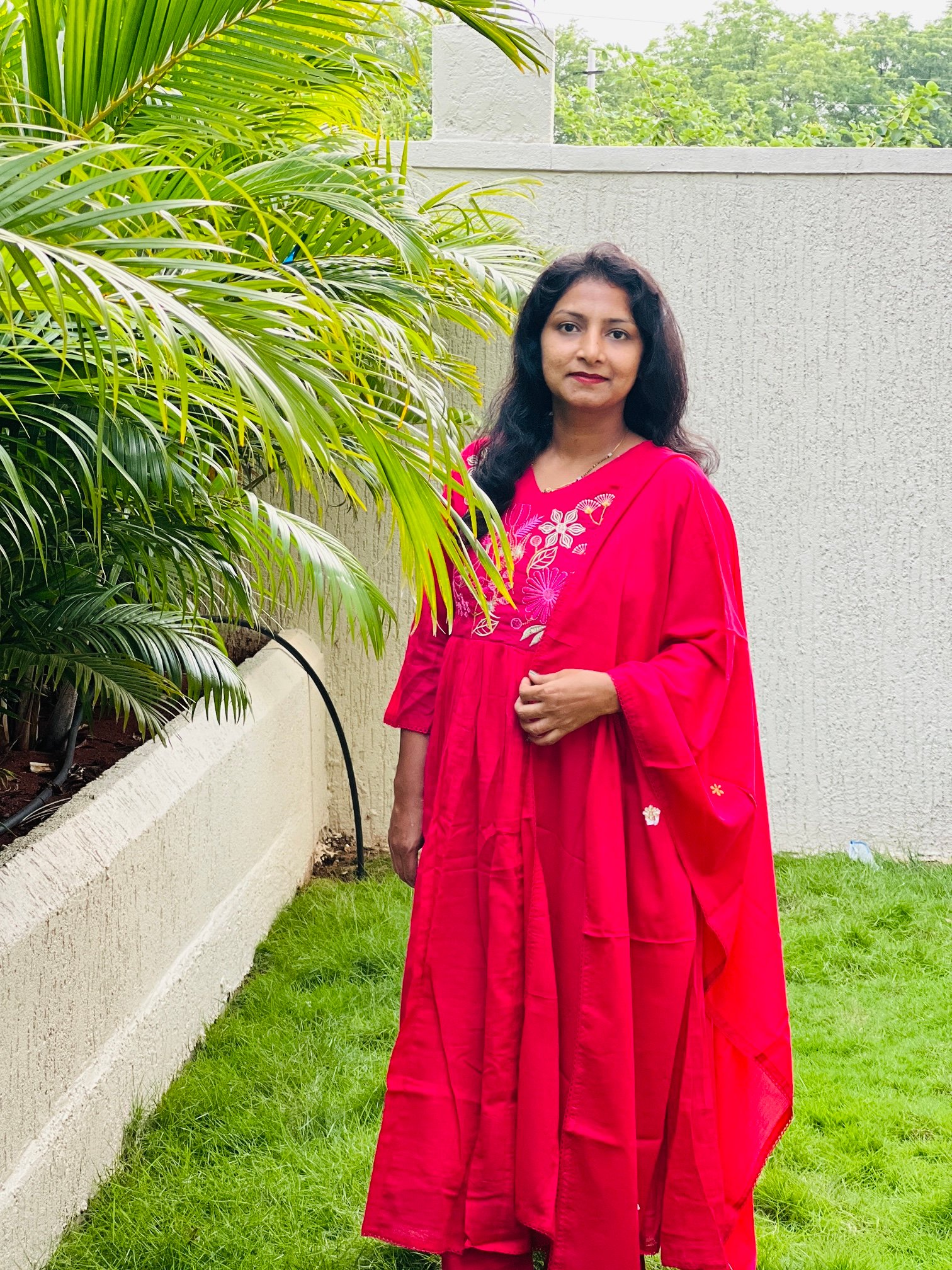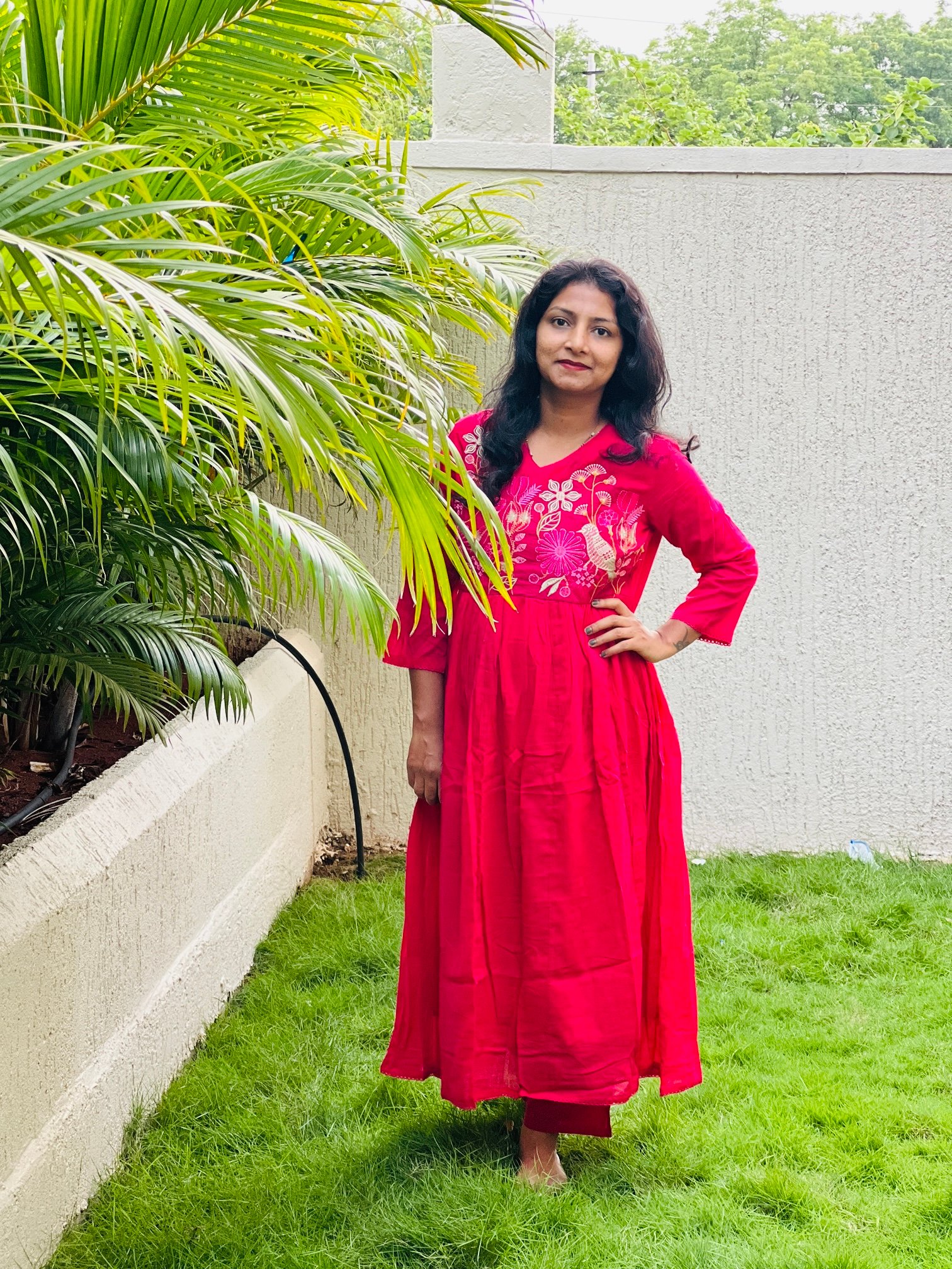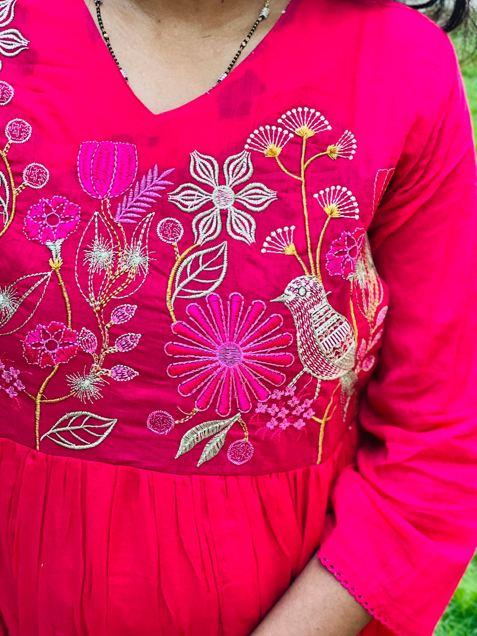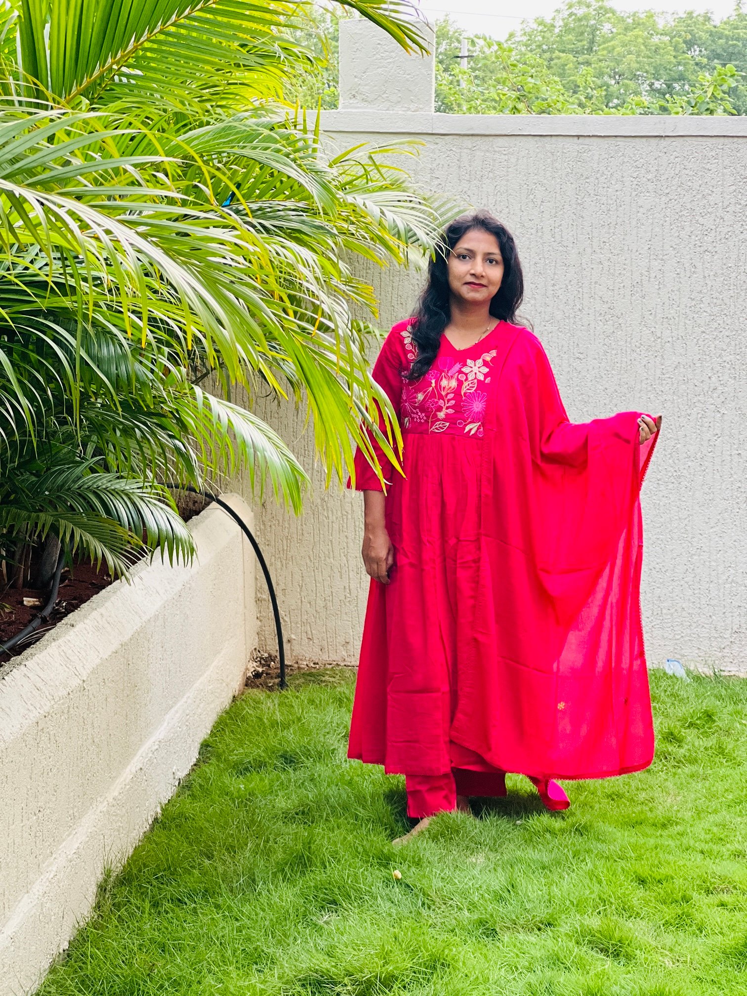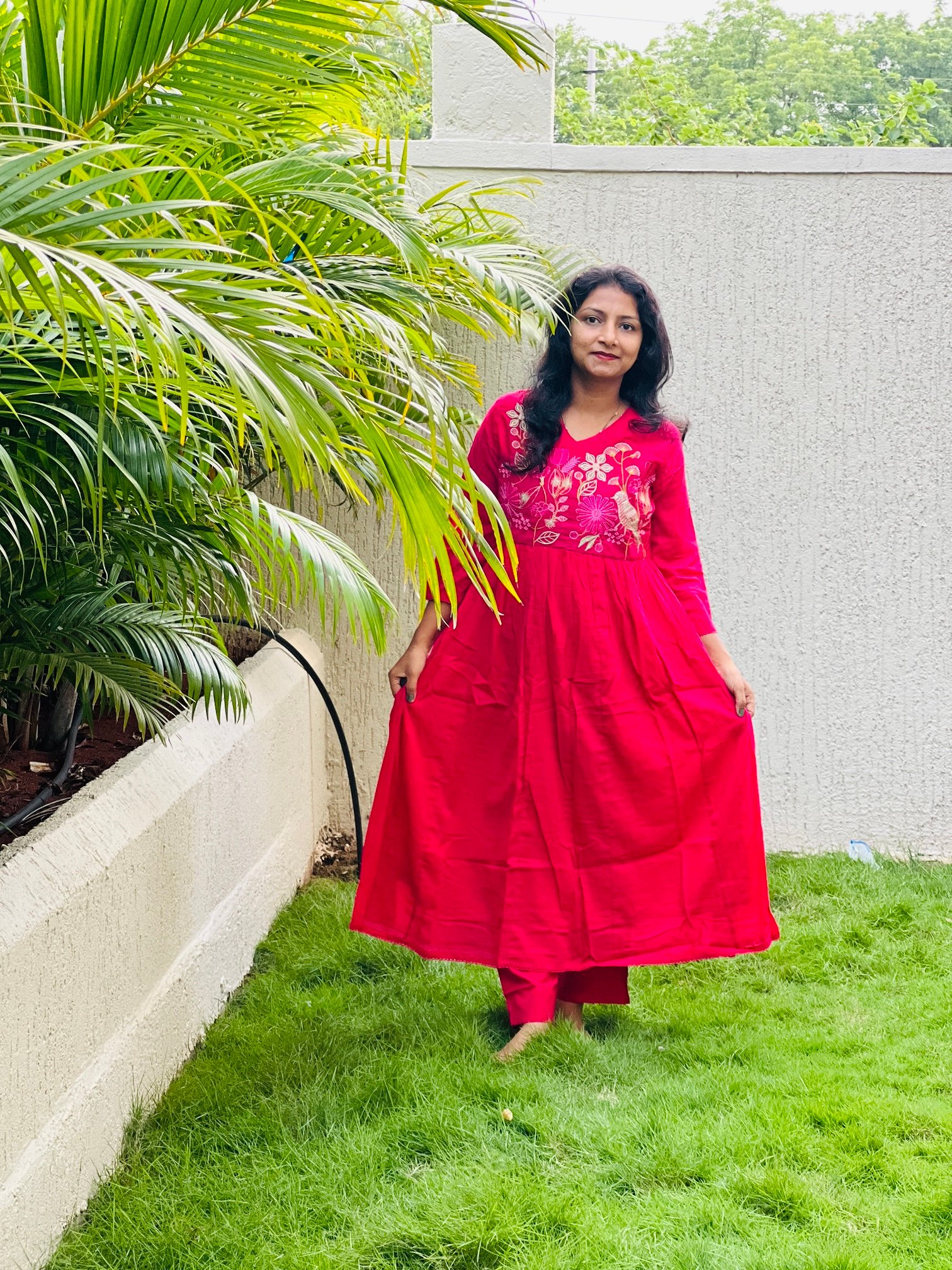 PATTERN– 3PC Umbrella Kurti Set with Heavy Embroidery on yolk part and Dupatta with Mul Cotton lining for top