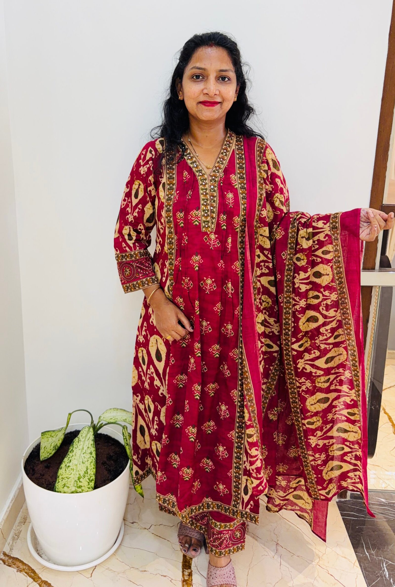 Flaunt Effortlessly in this beautiful pure cotton Anarkali 3PC Kurti set with Dupatta