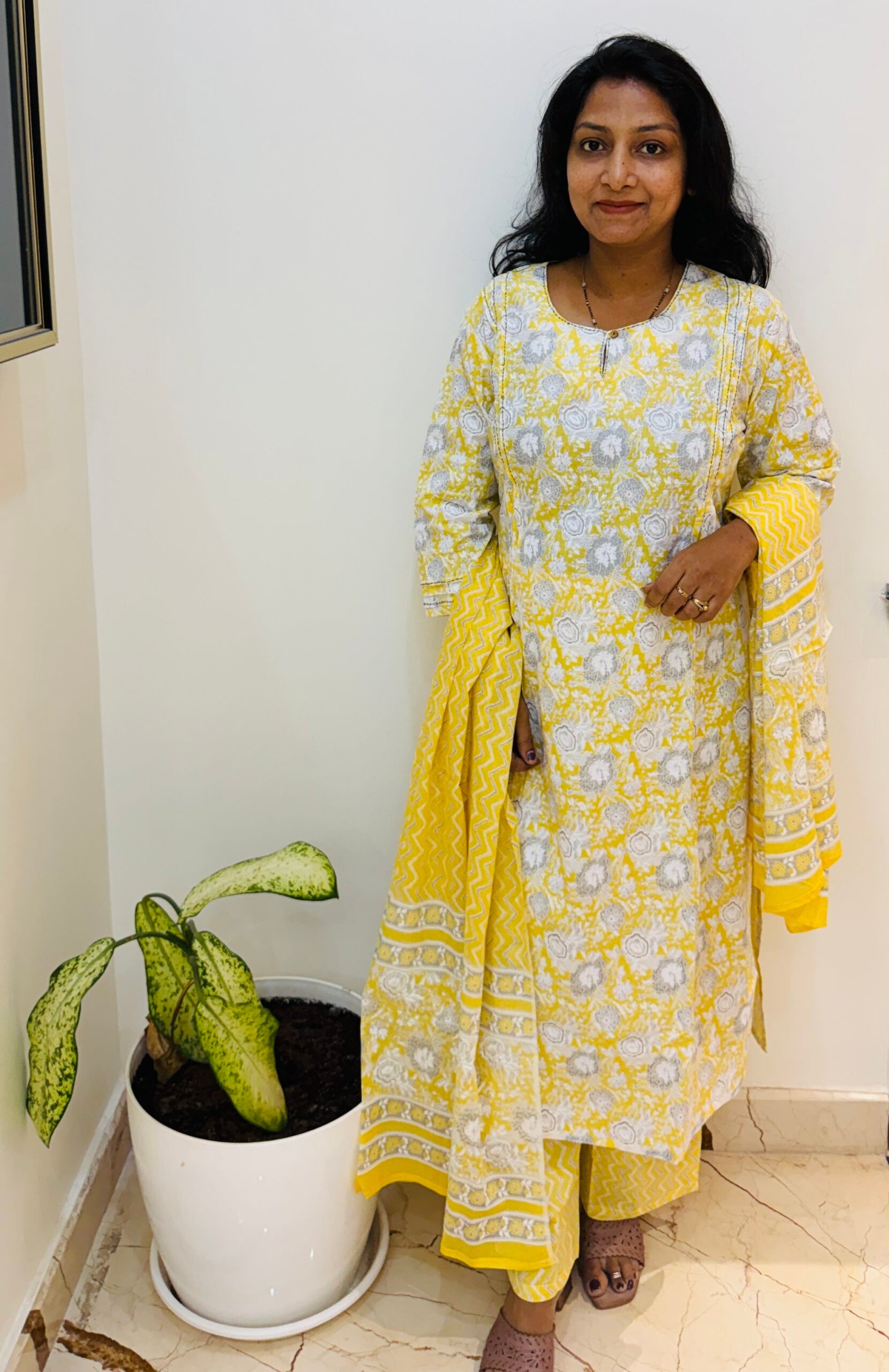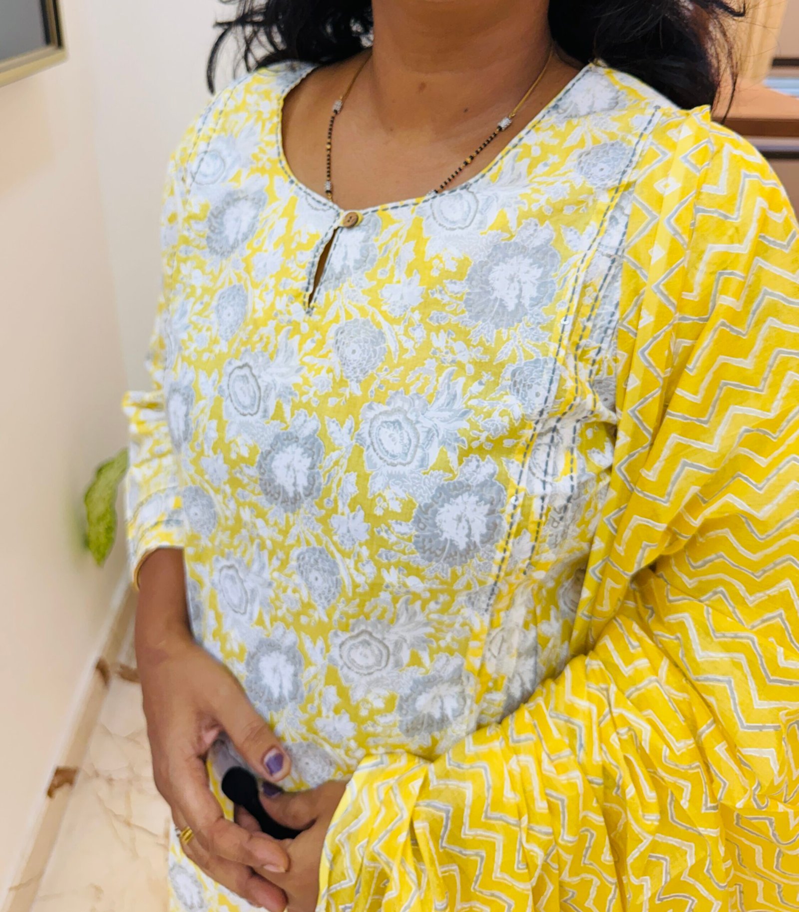 Flaunt Effortlessly without missing on comfort and style in our pure cotton 3PC Kurti set little bit of handtouch done on kurti to enhance your look best suitable for casual wear OR Office wear