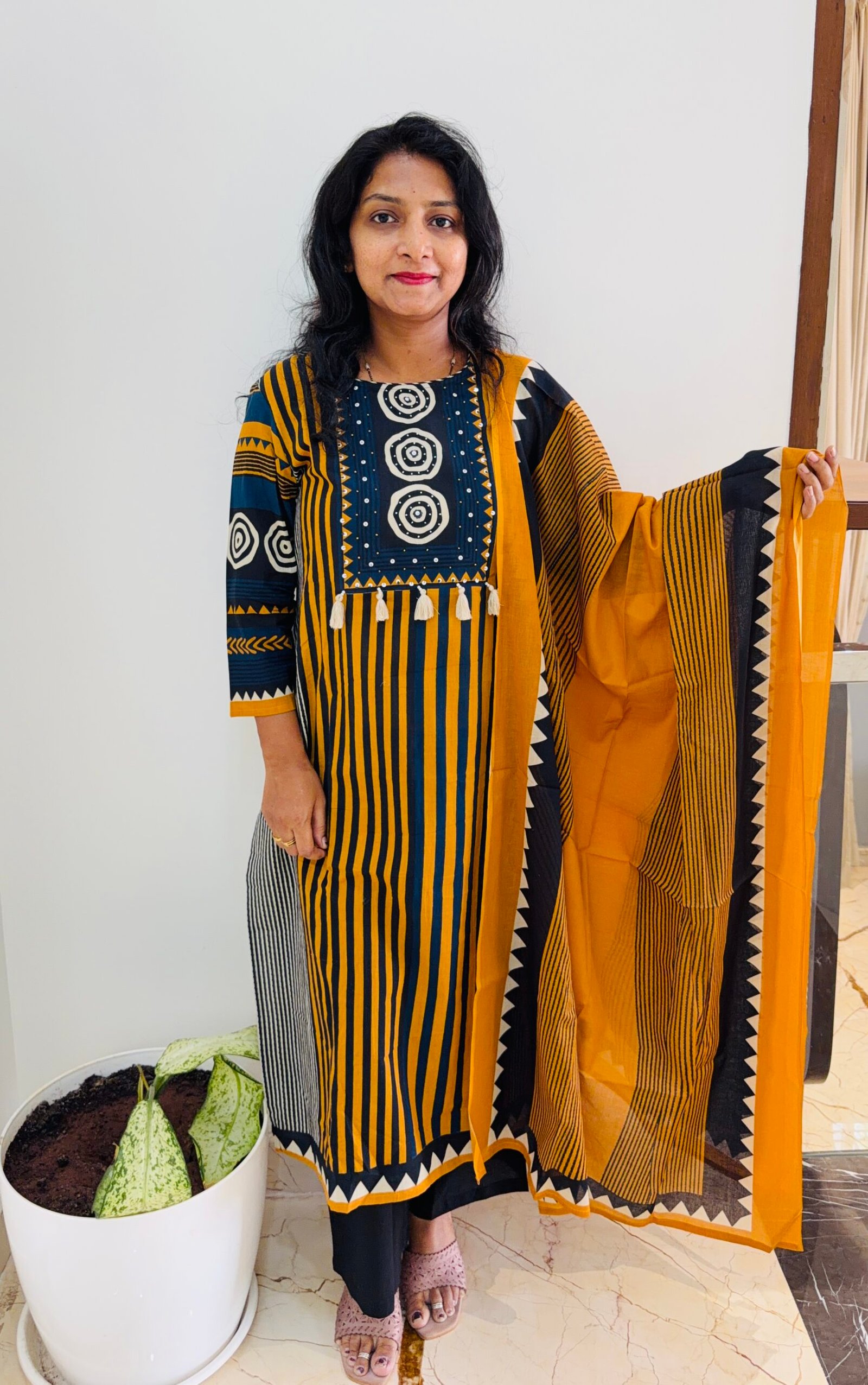 Flaunt Effortlessly without missing on comfort and style in our pure cotton 3PC Kurti set little bit of Handtouch done on kurti to Enhance your Look best suitable for Casual Wear OR Office Wear