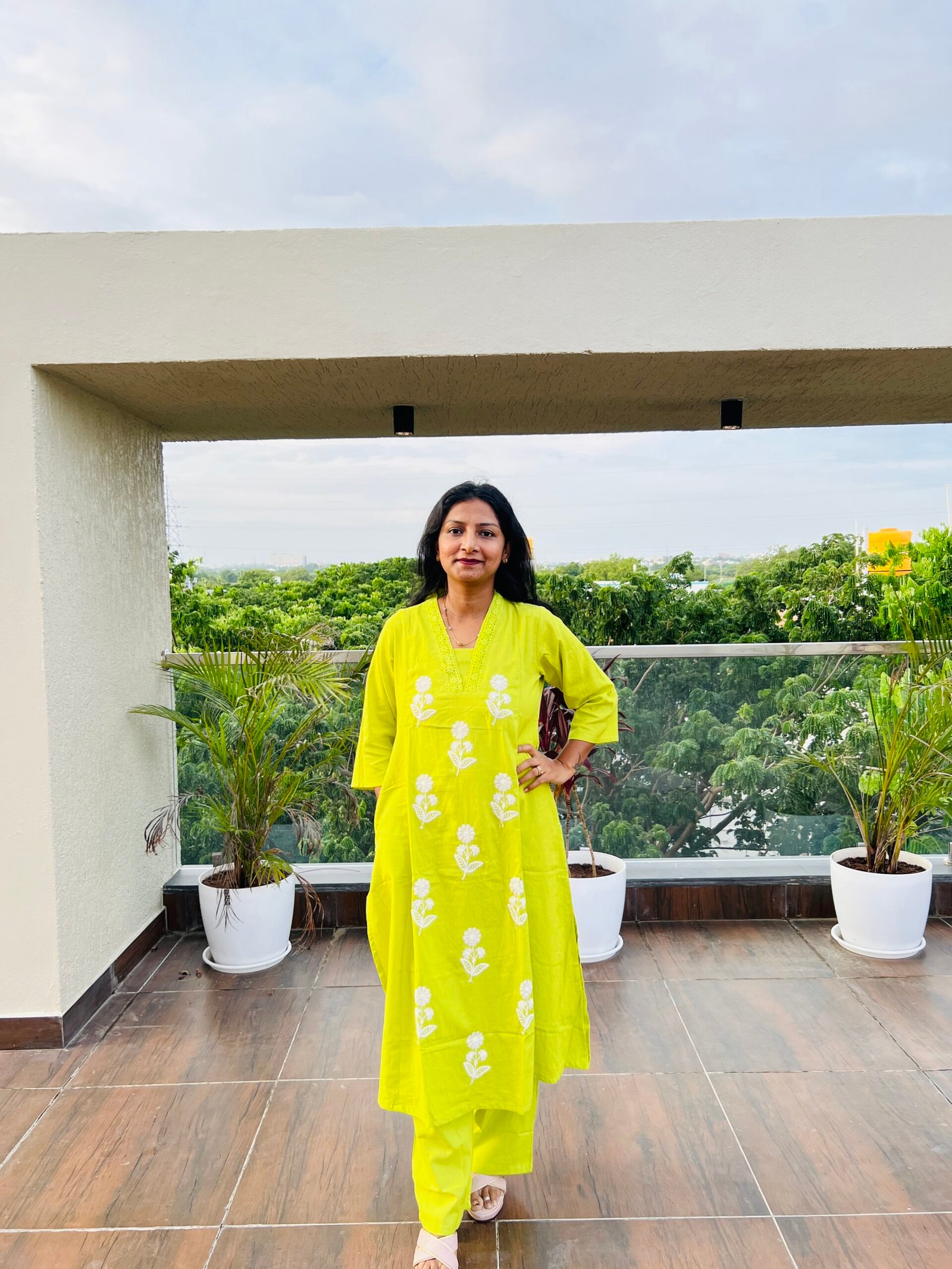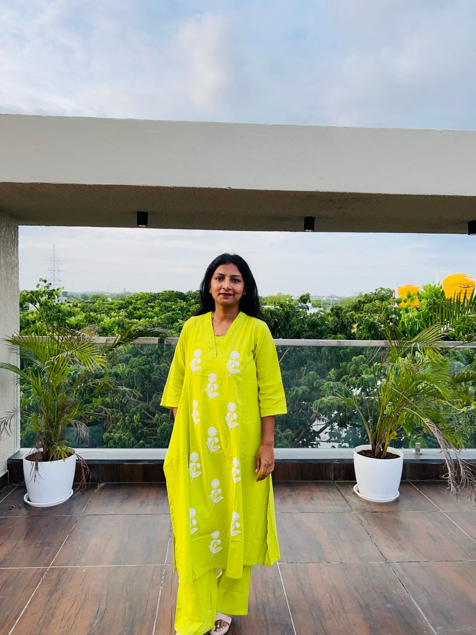 If you love to wear Vibrant Colors than this Neon Green Cotton Flex COORDSET gives u a great Vibrant look.