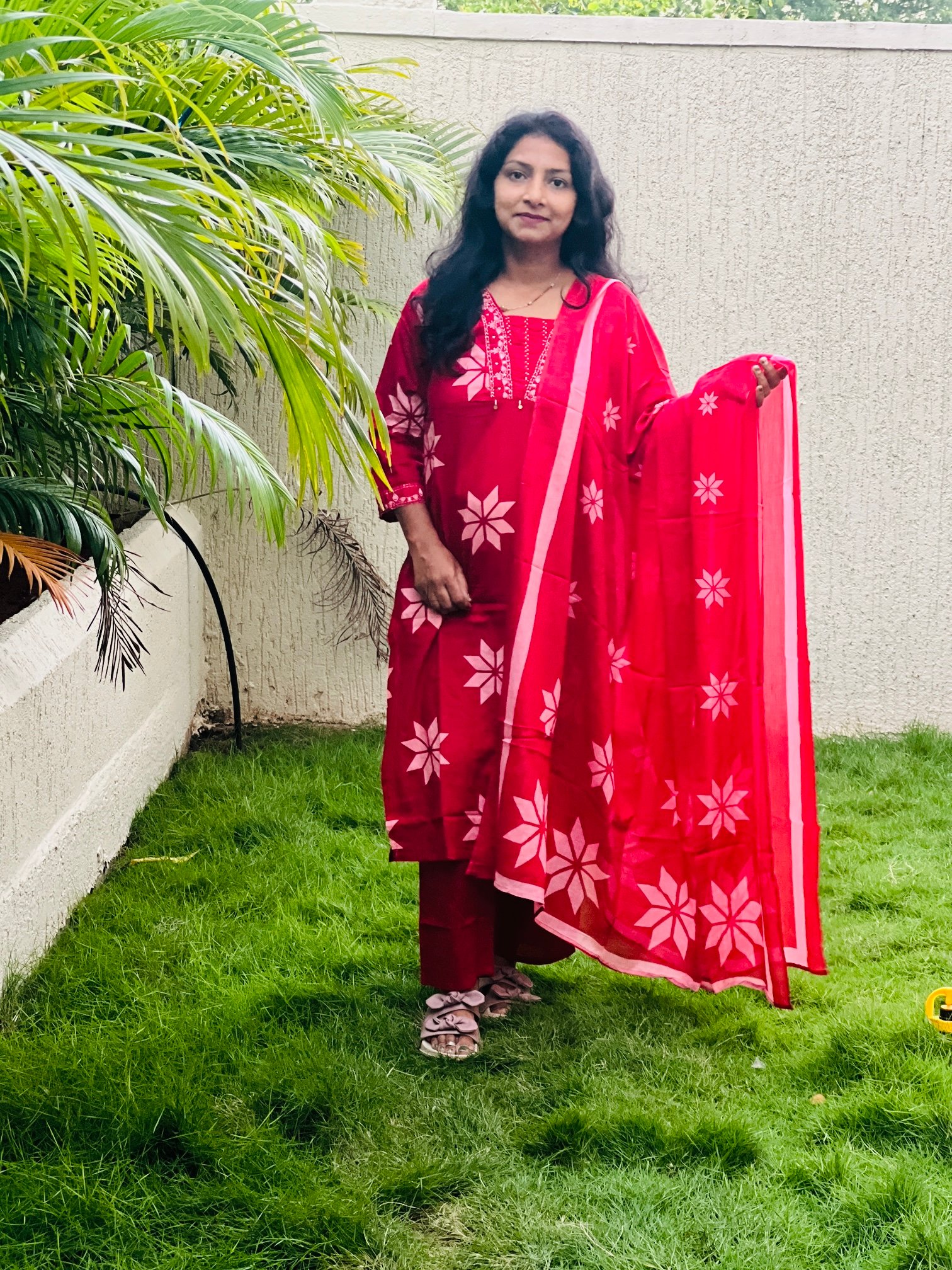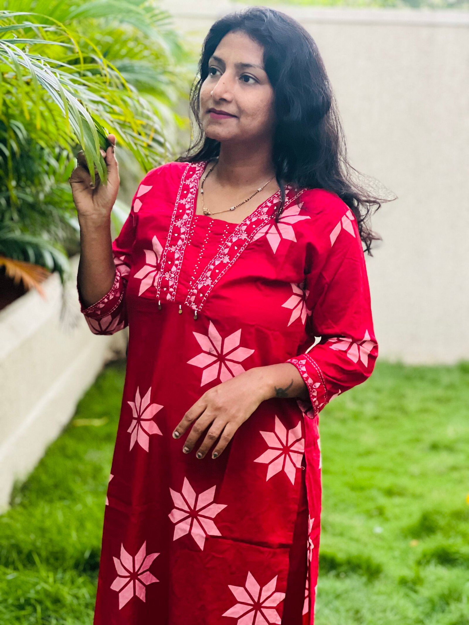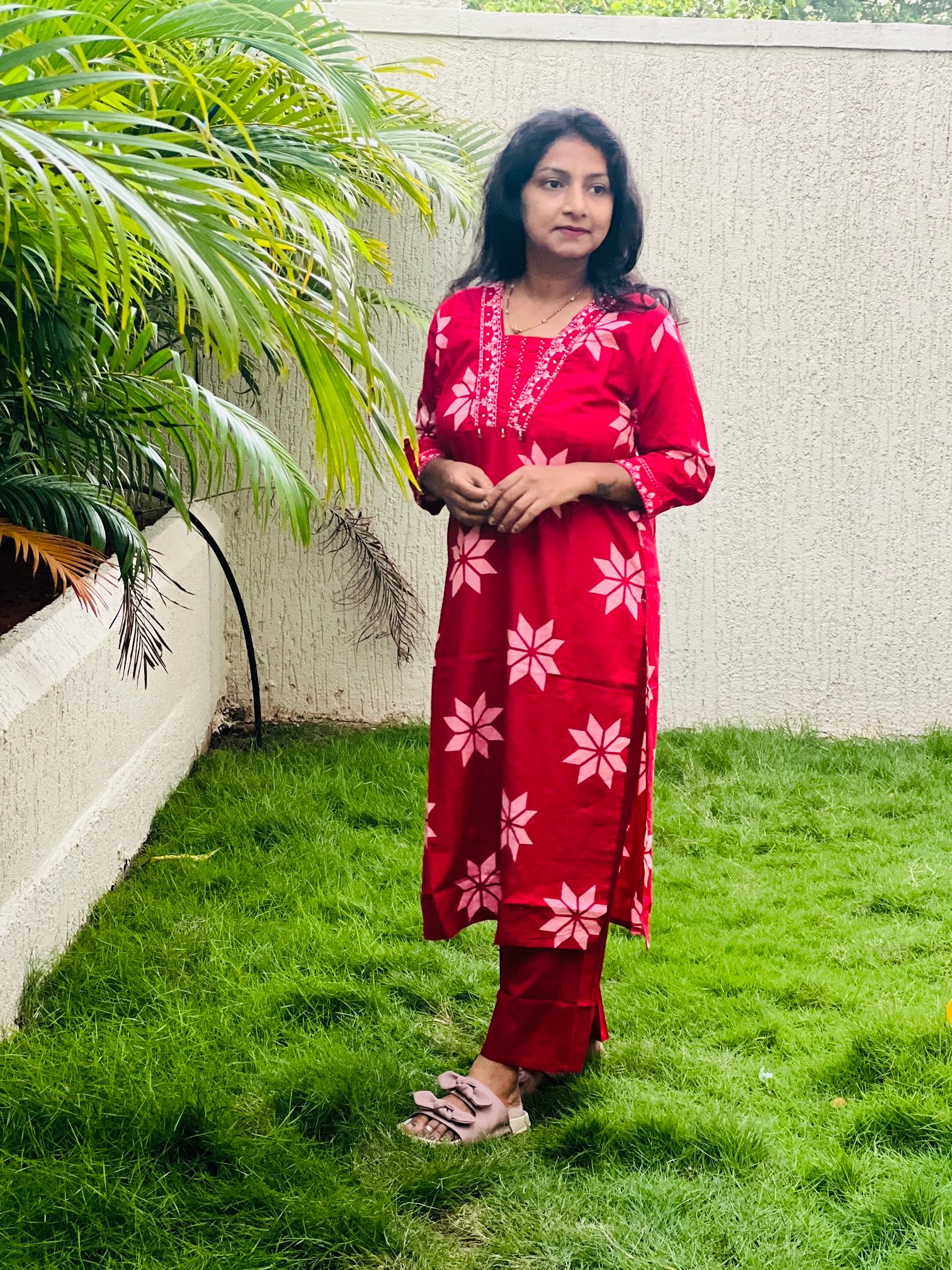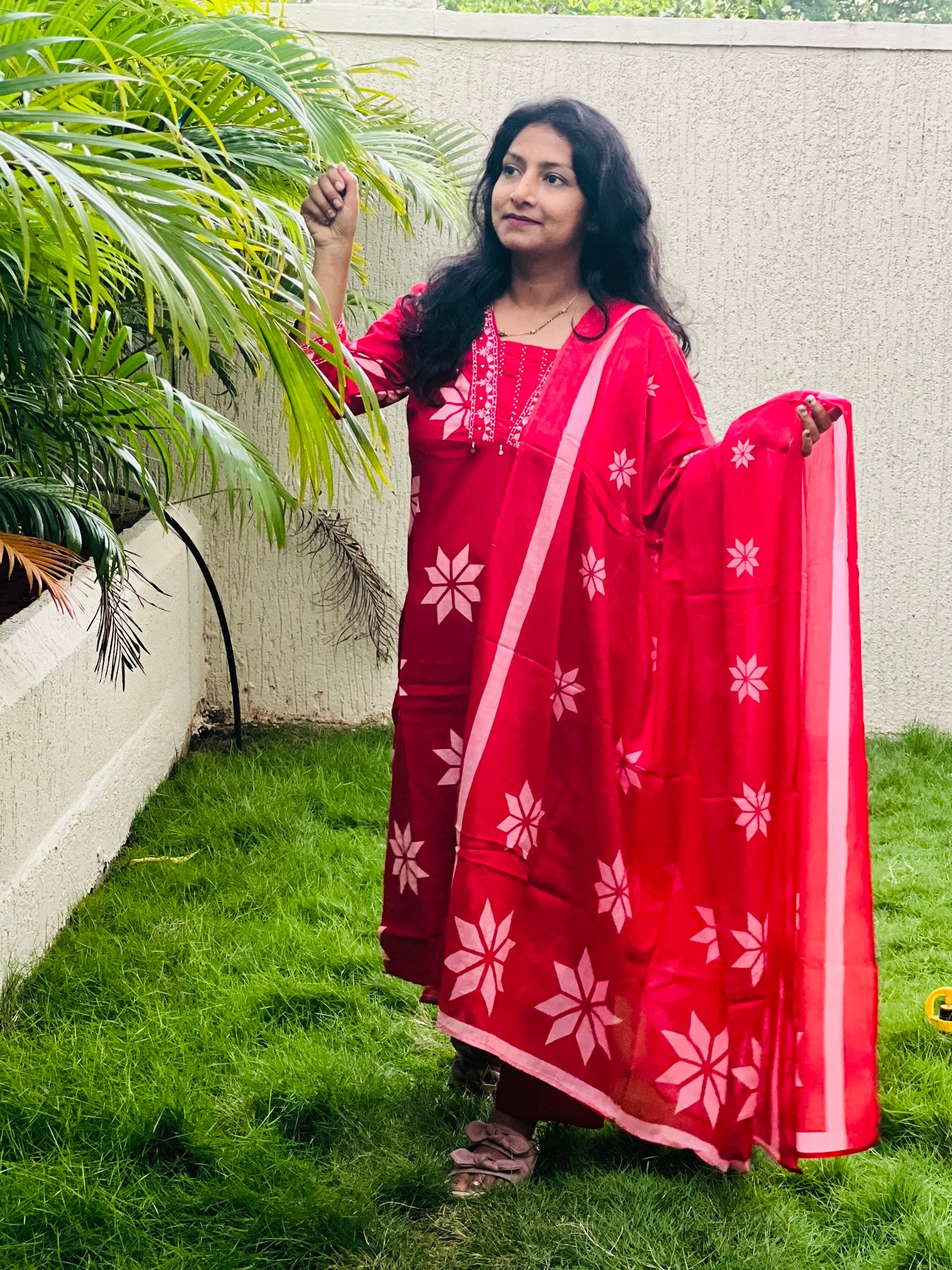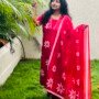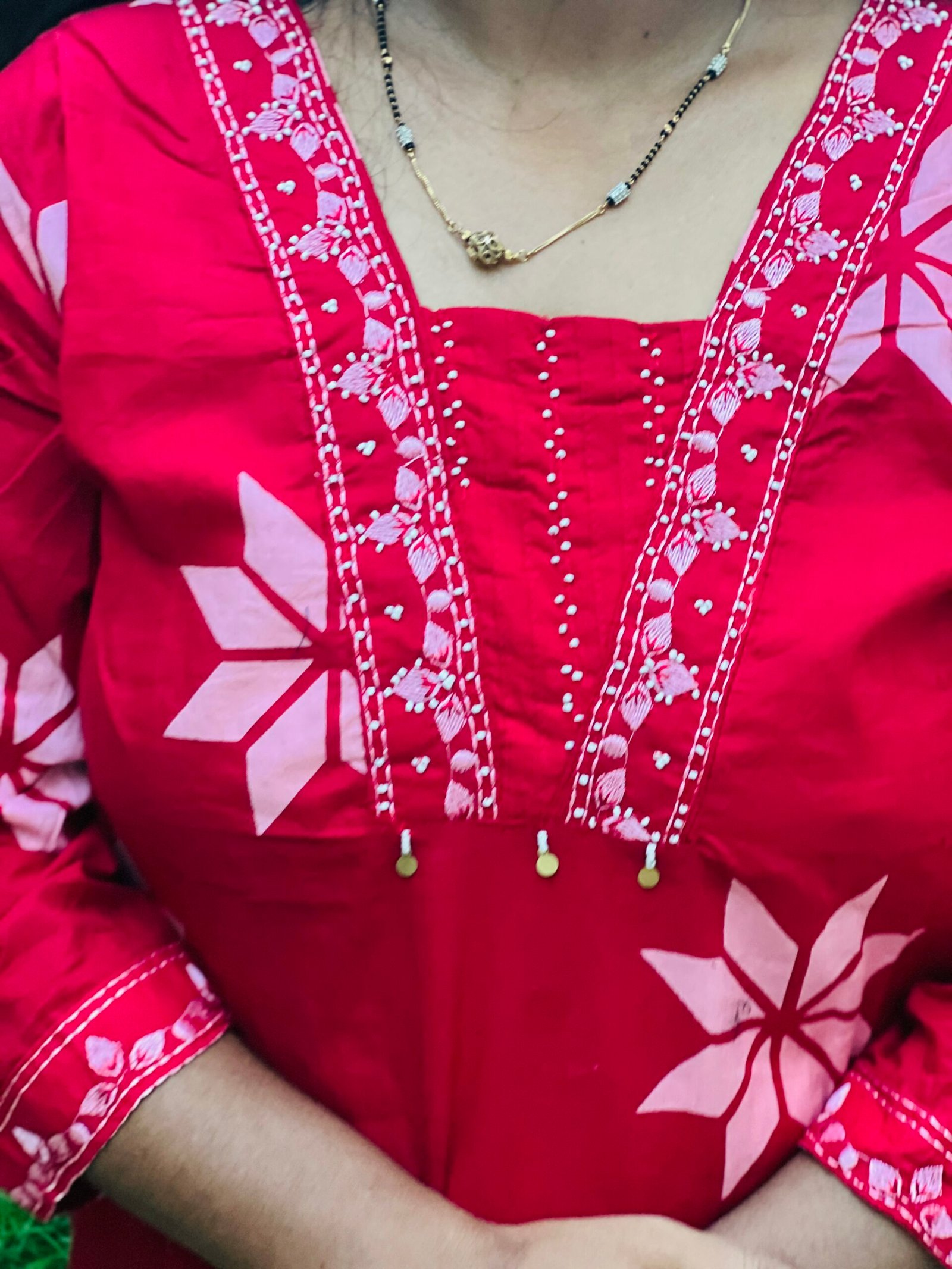 Blood Red Colour PURE COTTON 3PC Kurti Set With Pearl Handwork on Neck and Embroidered On Neck and Sleeves