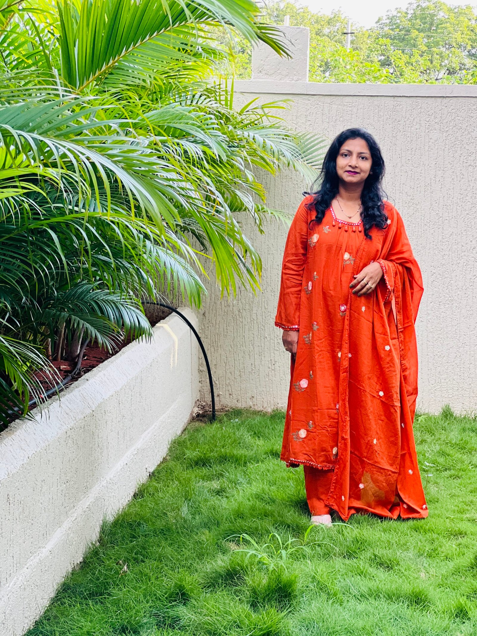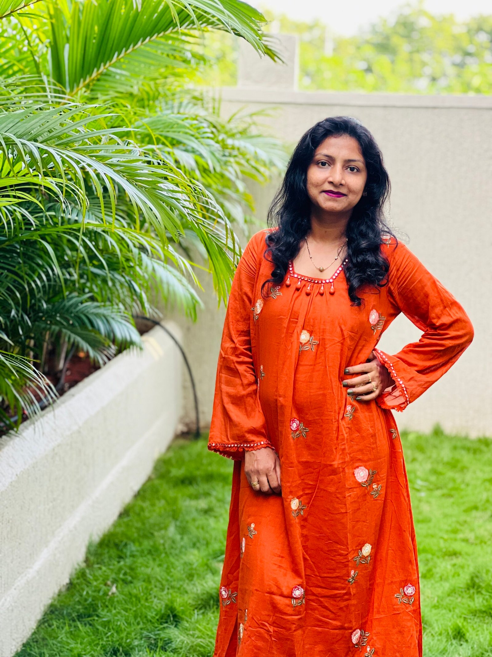 Be the first to review “Rust Orange Heavy Embroidery Aline Pure Mul Cotton Umbrella Sleeves 3PC Kurti Set”