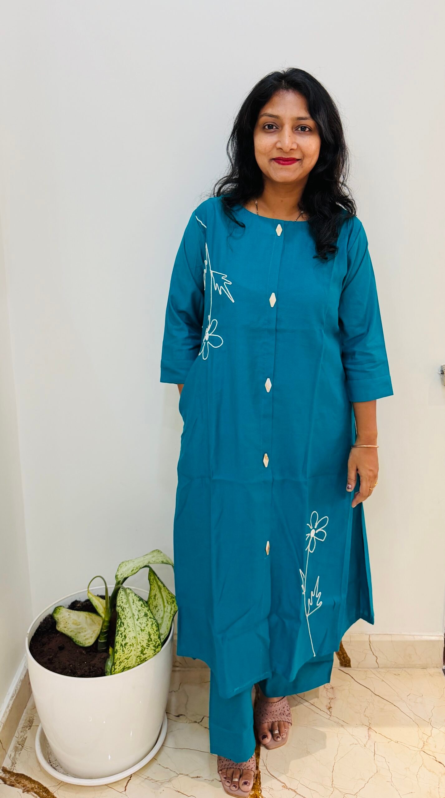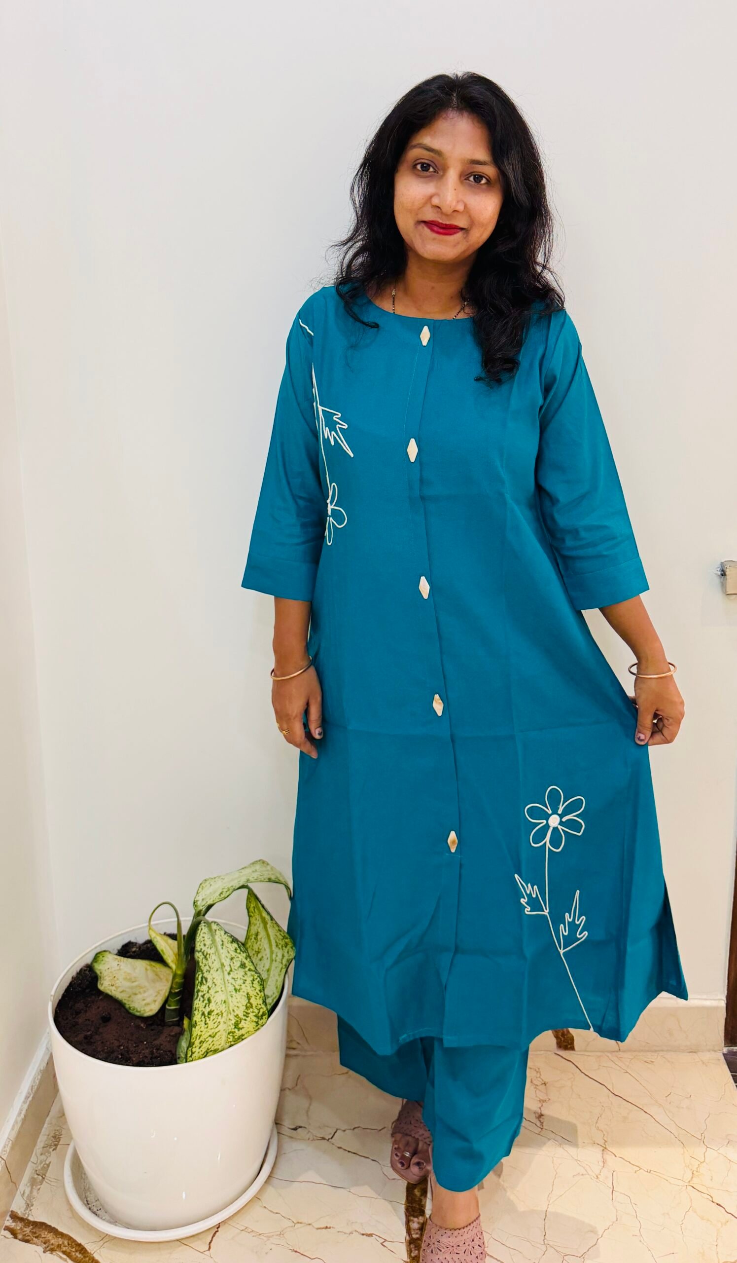 PATTERN – A line pattern chinese collar with Applique work also with side pocket