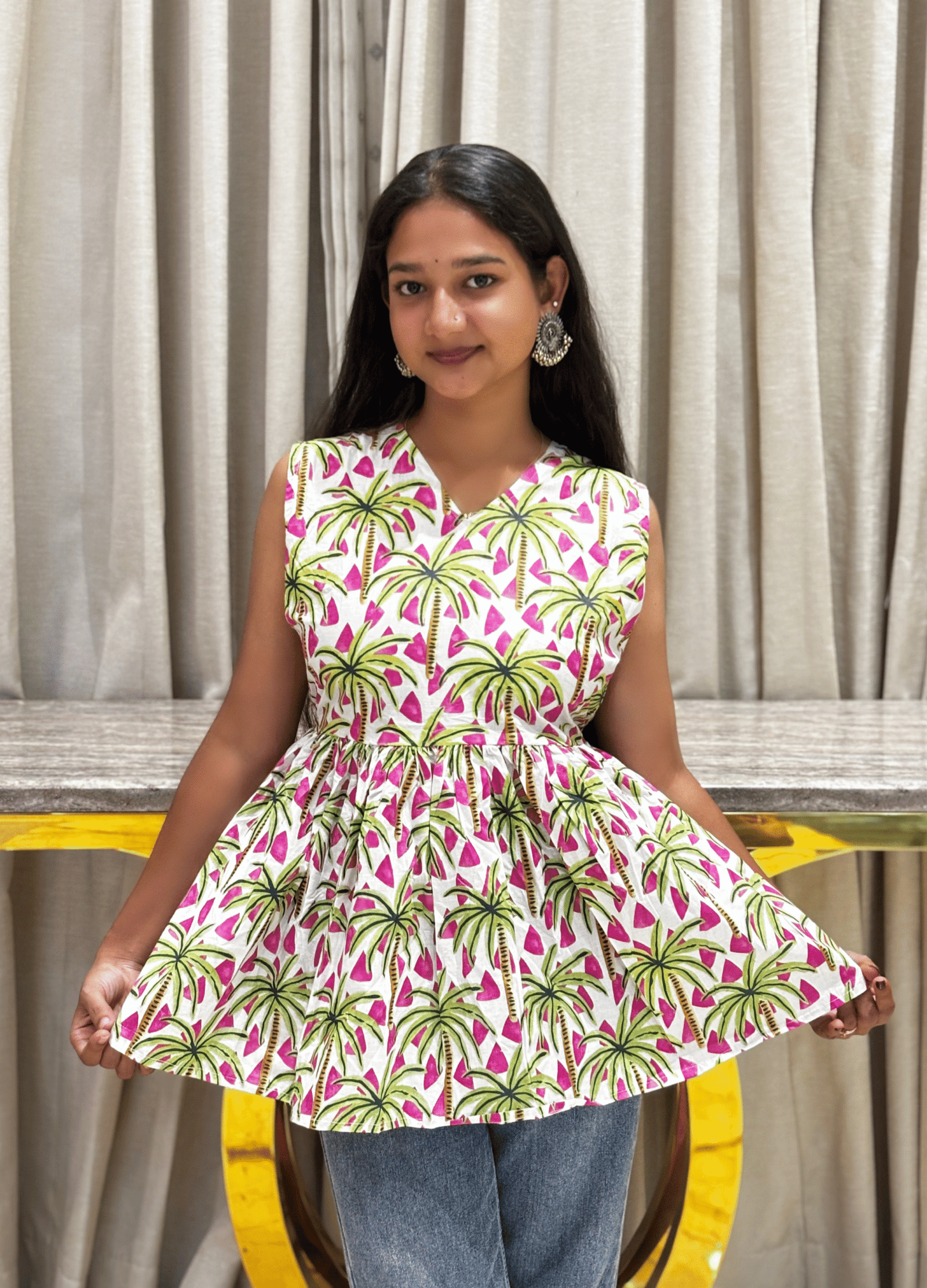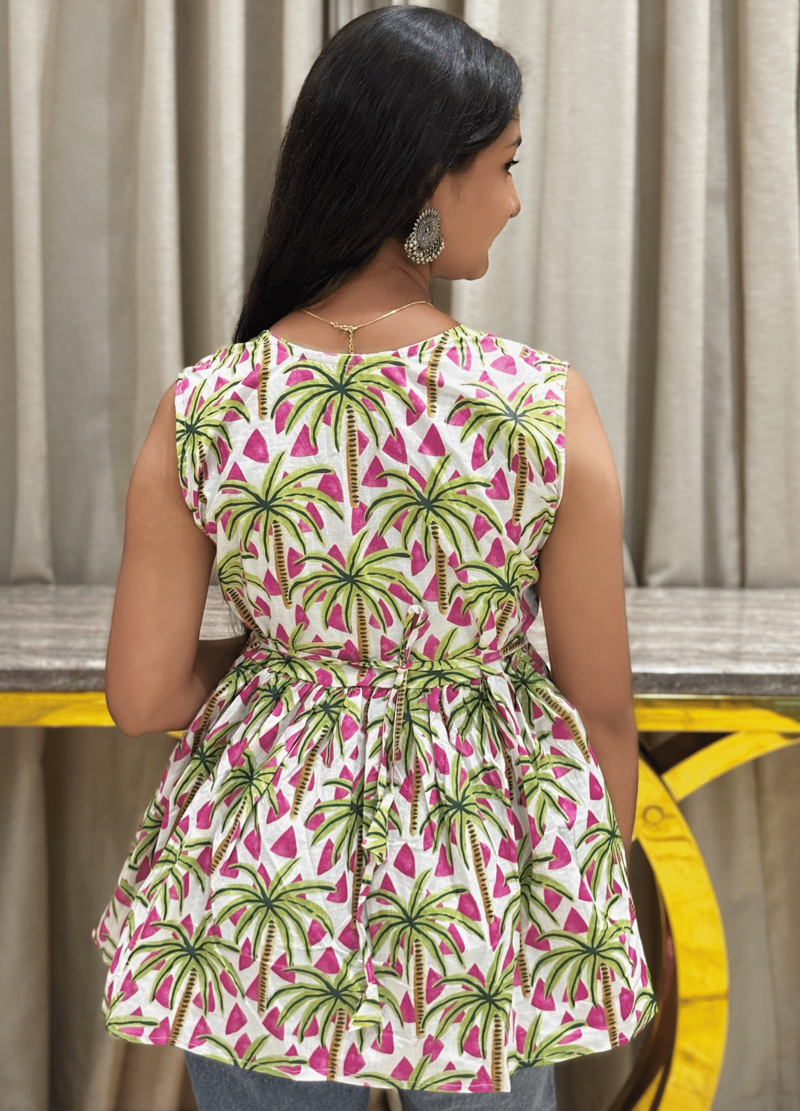 PATTERN – Pure Cotton Sleeveless Peplum Short Kurti with a tying ribbon at the back for adjustment